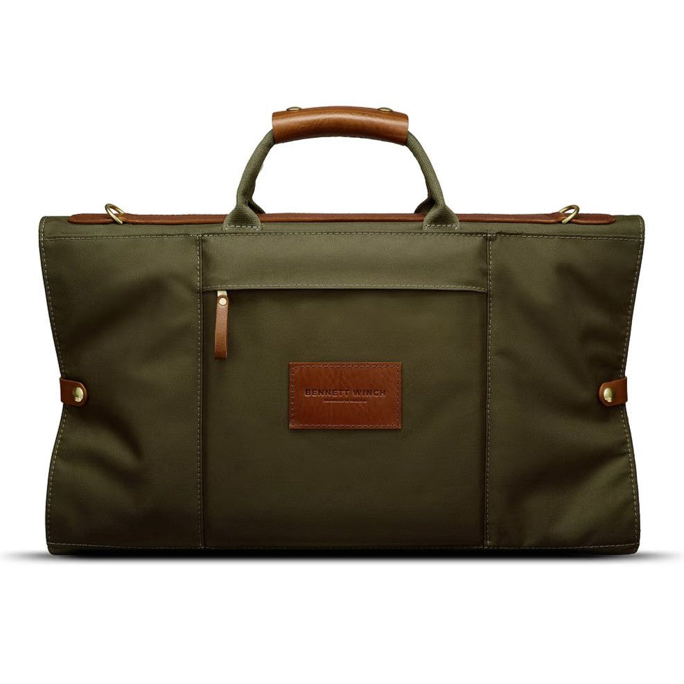No more suit carriers blowing in the wind on the tarmac – our Trifold has been designed as a standalone option to take your wardrobe on the move. Made to roll your clothes and suits instead of crease at the folds thanks to 3 magnetic attachments and a set of parallel leather retaining straps which reduce sharp angles, our Trifold can be carried in hand, over the shoulder or fixed atop your suitcase with an attaching sleeve that also features a pocket big enough for books, passports or an 11-inch iPad. Handmade in England from a high-performance Nylon outer that makes the carrier lightweight and waterproof, we’ve lined the interior in 12oz cotton for easy folding and fitted the top section with an Italian leather spine to hold your suit in place on the go.