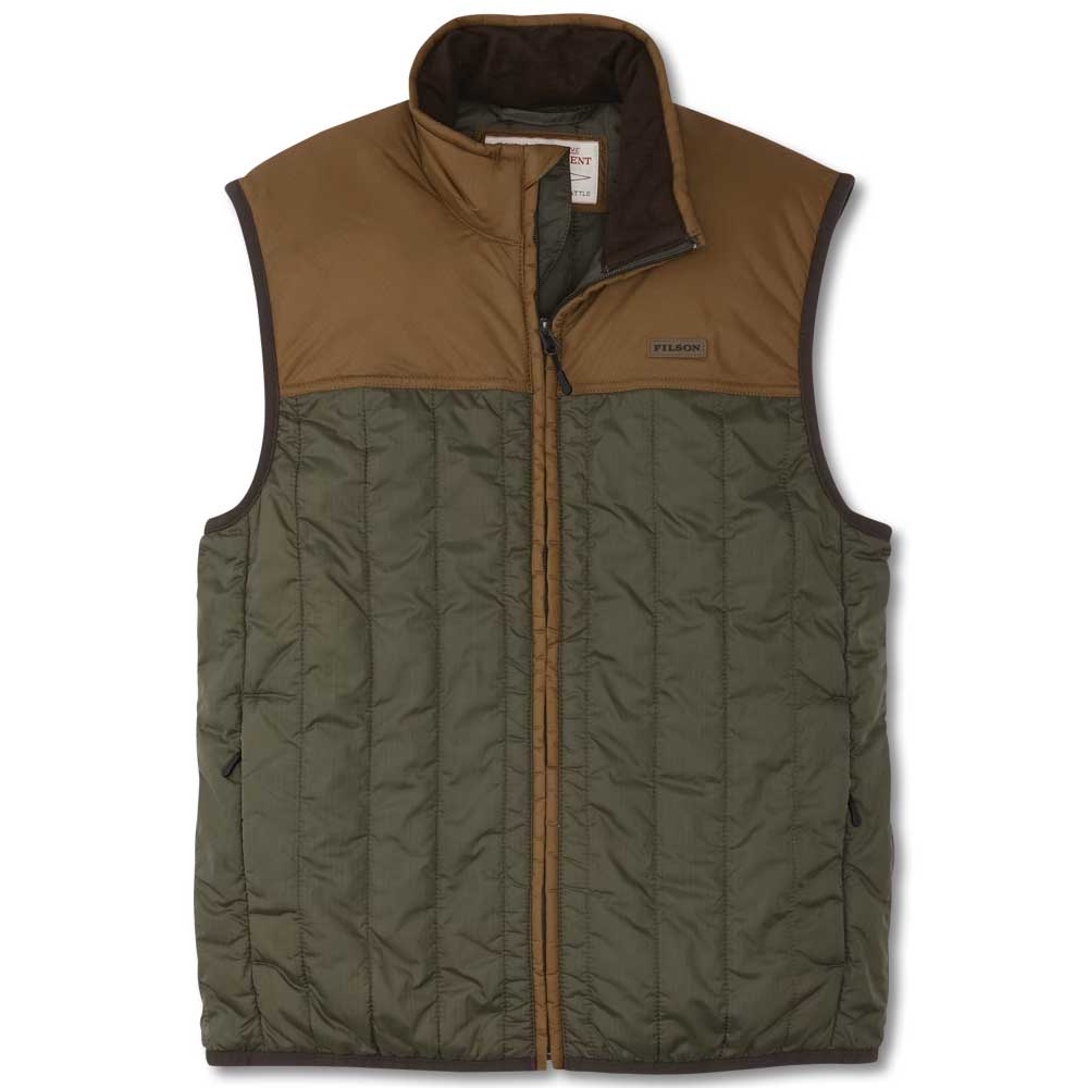 Die Filson Ultra-Light Vest ist die perfekte Außenschicht an milden Tagen und die ideale Mittelschicht an kalten Wintertagen. Die ultraleichte Prima Loft Gold-Isolierung mit 60 g hat ein außergewöhnliches Wärme-Gewichts-Verhältnis und behält 98 % ihrer Isoliereigenschaften bei Nässe. Das abriebfeste Außenmaterial aus Cordura-Ripstop-Nylon verfügt über einen elastischen Bund, der für ein niedriges Profil sorgt und das Tragen unter einer Jacke erleichtert. Weiche, bequeme Handwärmetaschen und Kragenbesatz mit Moleskin-Futter.