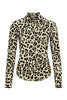 Elevate your wardrobe with the Printed Tania Jersey Long Sleeve Snap Front Top, a sophisticated take on casual elegance. Crafted from soft, lightweight Italian Super Jersey, this top features a bold cheetah print and a streamlined snap-front closure, making it perfect for layering or wearing on its own. The relaxed fit and high pointed collar provide a flattering silhouette, while the curved hem and center-back pleat add subtle sophistication. Ideal for both work and weekend wear, this top effortlessly combines comfort and style.