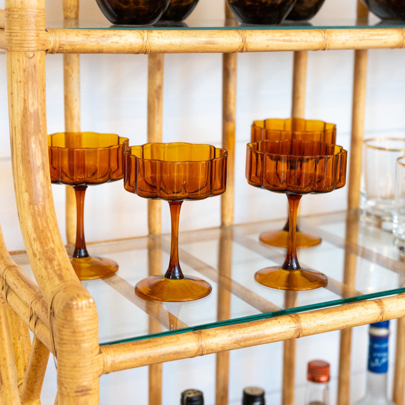 Fazeek's Wave Coupe Glass is a modern and playful reimagining of a glassware classic. Featuring an elegant, elongated stem and a wide bowl embellished with beautiful signature rippled edges. These hand-blown glasses are the ultimate vessel to serve your favorite sparkling varietals, decadent cocktails or delicious desserts.