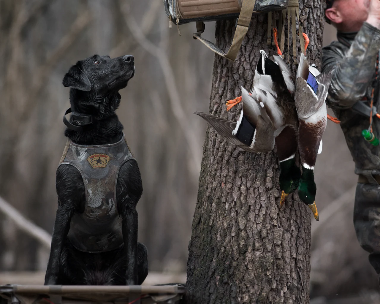Keep your hunting companion safe, warm, and agile with the Bloodline Elite Dog Vest by Rig’Em Right® Waterfowl. Designed with a 3-layer construction, this vest combines 3mm neoprene for comfort, a thin foam layer for buoyancy, and a heavy-duty canvas outer for protection against obstacles. The 5mm neoprene chest lining enhances flexibility and warmth, while the braided handle allows for easy retrieval. Its athletic cut around the neck and front legs ensures mobility without chafing, and the sturdy zipper with Velcro closure keeps the vest securely in place.
