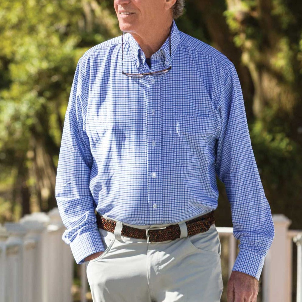 Kevin's Long Sleeve Performance Dress Shirt-MENS CLOTHING-Blue Plaid-S-Kevin's Fine Outdoor Gear & Apparel