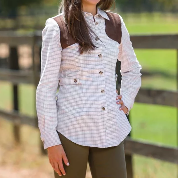 Upgrade your field wardrobe with Kevin's Ladies Huntress Untucked Shooting Shirt, designed for comfort, performance, and style. Crafted from 97% cotton poplin with 3% stretch, it moves with you while providing a flattering fit. The adjustable tabs ensure a tailored look, and the extended tails offer full coverage during shooting, keeping you both functional and stylish.