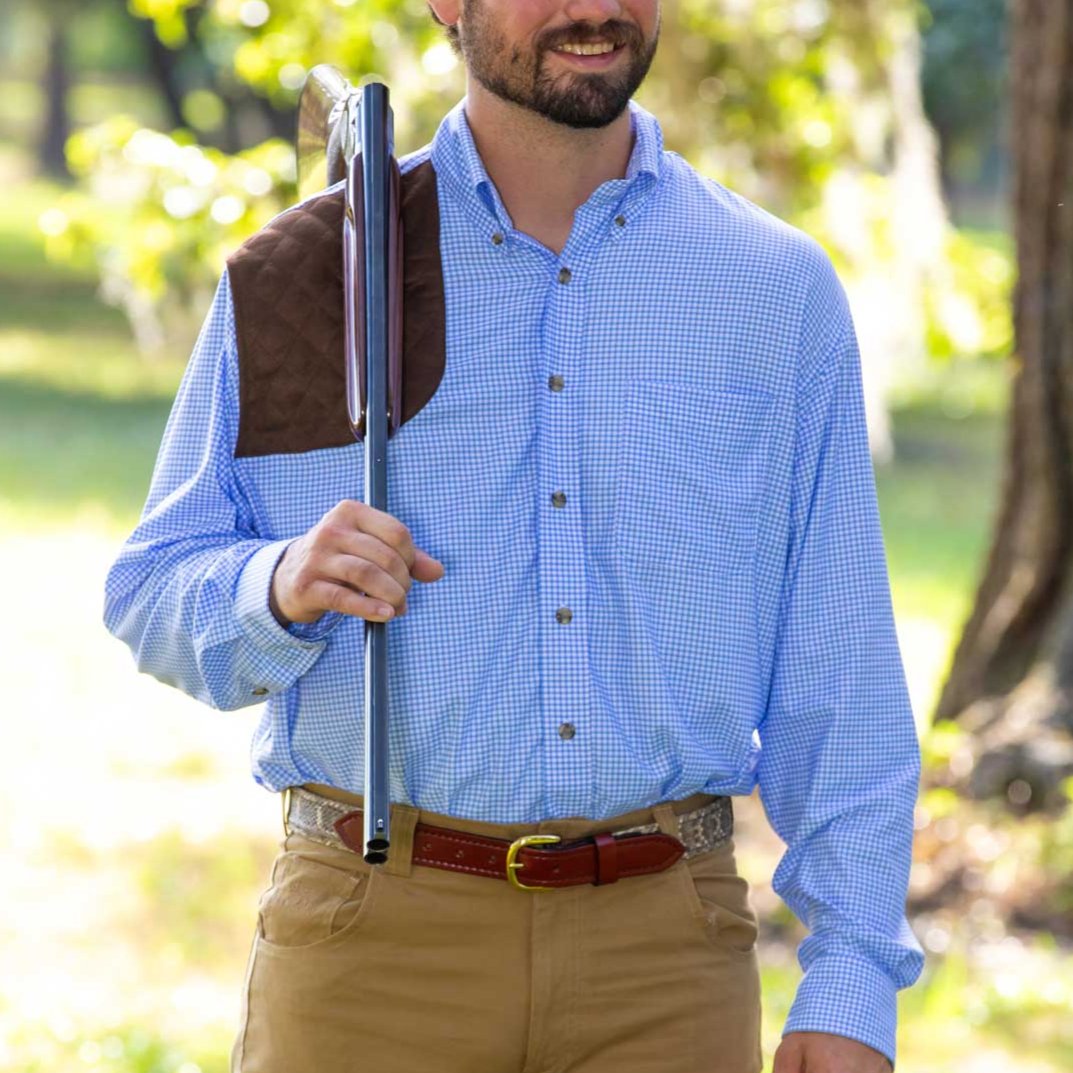 Kevin's Chemise de tir à manches longues bleu/marron Performance Tattersall pour droitier