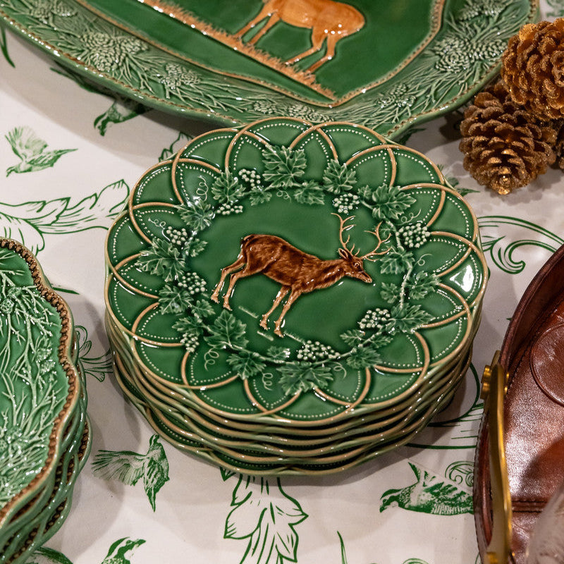 Ces assiettes à goûter en faïence peintes à la main et inspirées de la nature présentent les animaux du bosquet dans toute leur splendeur. Entourés de végétation et de baies, le sanglier et le cerf nous invitent au voyage à travers de belles et vertes forêts.