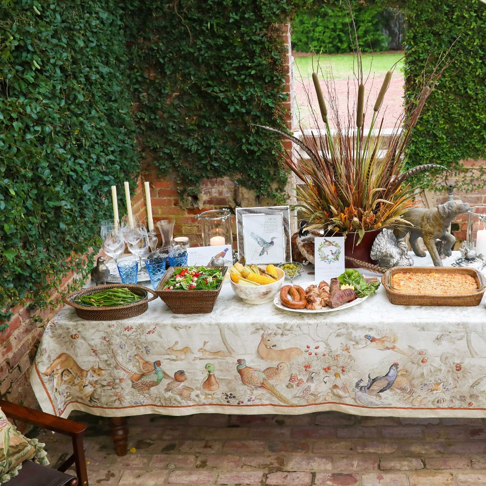 - Design: Intricate gamebirds, ducks, foxes, and deer