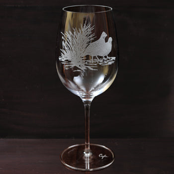 Ce 26 onces. Le verre à vin en cristal est gravé avec votre choix de motifs Black Lab, Bob White Quail, Corgi, Elk, English Springer, Fox and Horn, Fox and Hounds, Golden Retriever, Horse, Pheasant, Pheasant Hunting, Pointer ou Turkey. Gravé en Amérique.