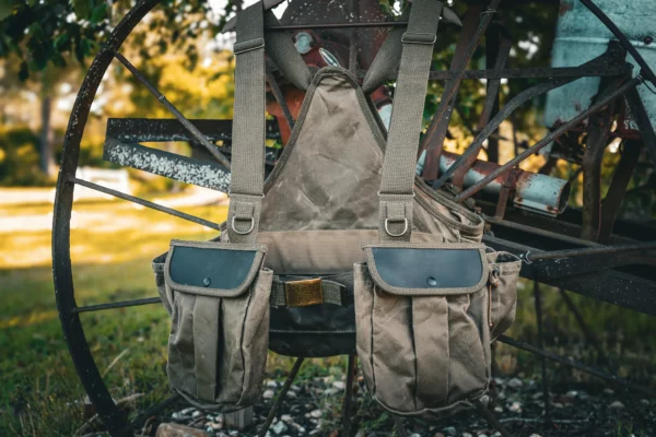 The Plantation-Style Field Vest combines timeless charm with rugged, field-ready durability. Crafted from double waxed canvas, this vest is both water-repellent and abrasion-resistant, designed to take a beating while maintaining a sharp, classic look. Its integrated belt shifts weight to your hips for comfort, while adjustable cotton webbing shoulder straps and brass hardware ensure a perfect, long-lasting fit.