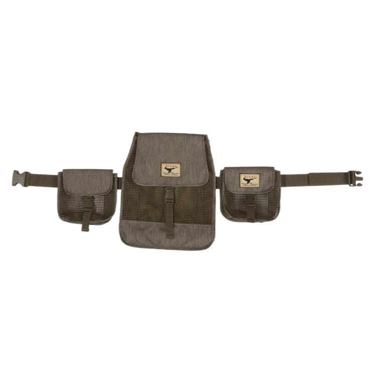 - Three bellowed pouches with snap buckle closures