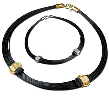 This modern necklace is an interpretation fashioned after African Elephant Hair Jewelry that has an everyday opulence. The necklace is made from high quality synthetics and 14K gold fill knots or argenteum sterling silver (tarnish resistant) knots. This unique necklace encompasses multiple strands which weave through the knots representing the different seasons. The knots symbolize powerful forces in life, gracing the wearer with good fortune and many years of love, prosperity and happiness. Worn with jeans, or elegant attire, the wearer will delight the senses and draw those around into a mythical feast for the eyes. Handmade with pride in the USA.