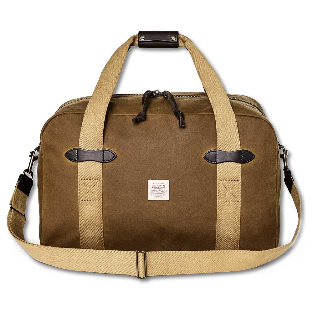 This durable duffle bag is made with the iconic Tin Cloth and is fully lined with nylon for added protection. It features a metal YKK® zipper, as well as a cotton webbing shoulder strap and handles that wrap around the bag for support. Crafted from a combination of 14-oz. 100% cotton oil finish Tin Cloth, nylon lining, Bridle Leather, and cotton webbing. Imported.