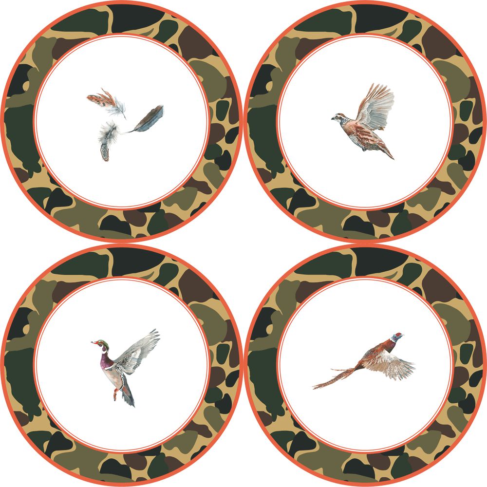 Celebrate every meal with our stunning Game Birds & Feather Salad Plates set, designed by the Kevin's team featuring the vibrant game bird artwork of Kat McCall. Full of color and charm, these plates bring a fun, rustic touch to your lodge, home, or outdoor gatherings.