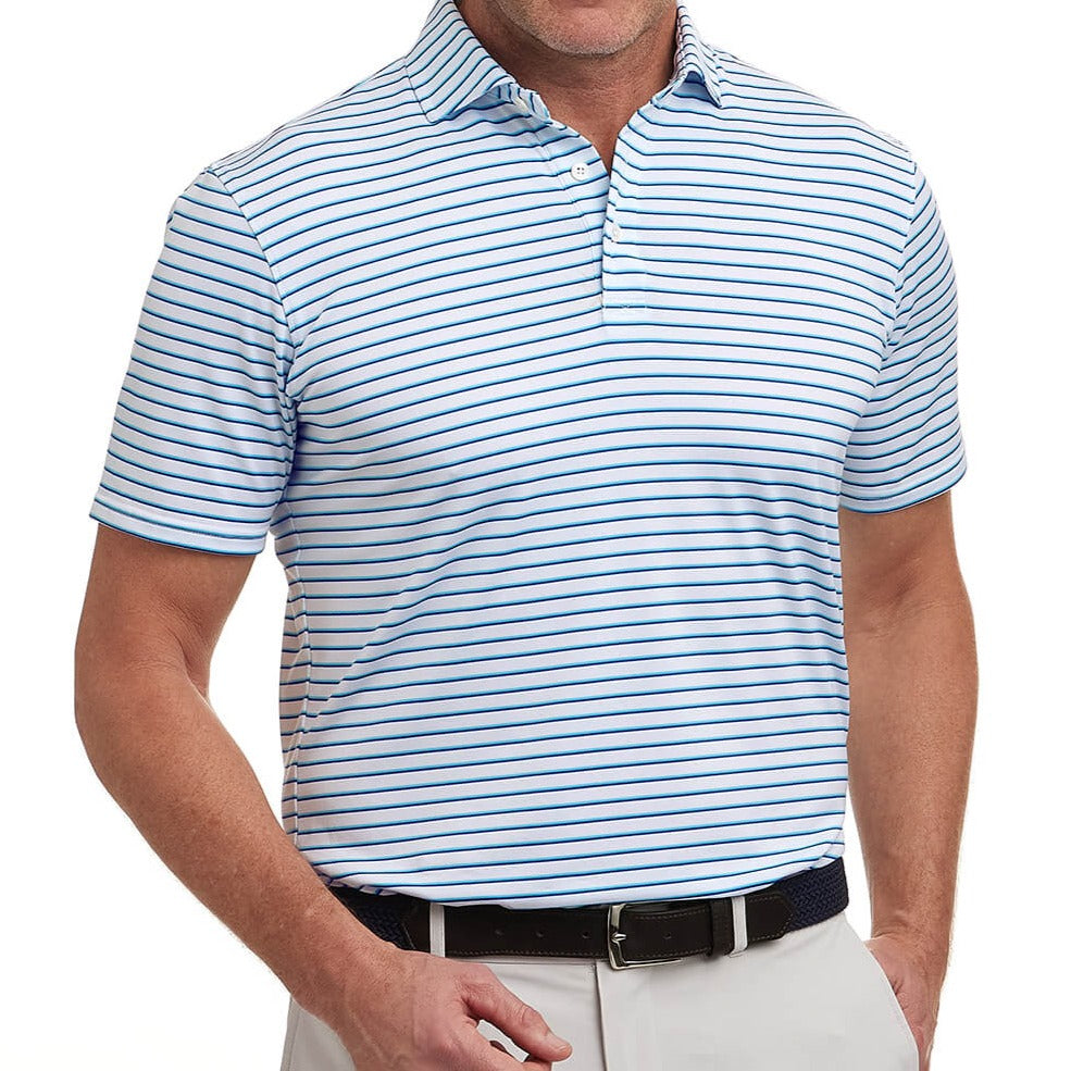 The Sutton Polo offers a classic performance style for those who prefer the soft, smooth feel of jersey knits. Designed for both comfort and versatility, it provides excellent moisture-wicking capabilities and enhanced stretch fibers for a full range of movement on and off the course.