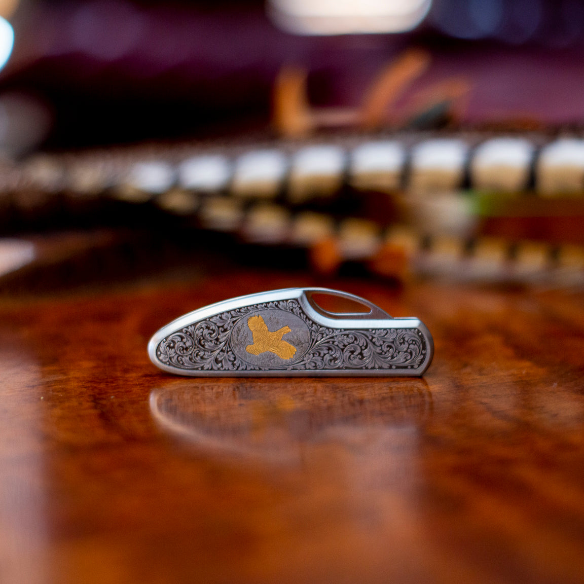 Engineered by master craftsman Dario Cortini, this exquisite knife draws inspiration from the timeless artistry of premium shotgun sidelocks. Handcrafted in Italy’s famed Val Trompia region, it is forged from superior Inox stainless steel to ensure strength, sharpness, and durability. Each piece is elevated by Dario’s distinctive engraved artwork, created exclusively for Kevin’s, featuring a quail hunting motif that celebrates tradition and field sport heritage.