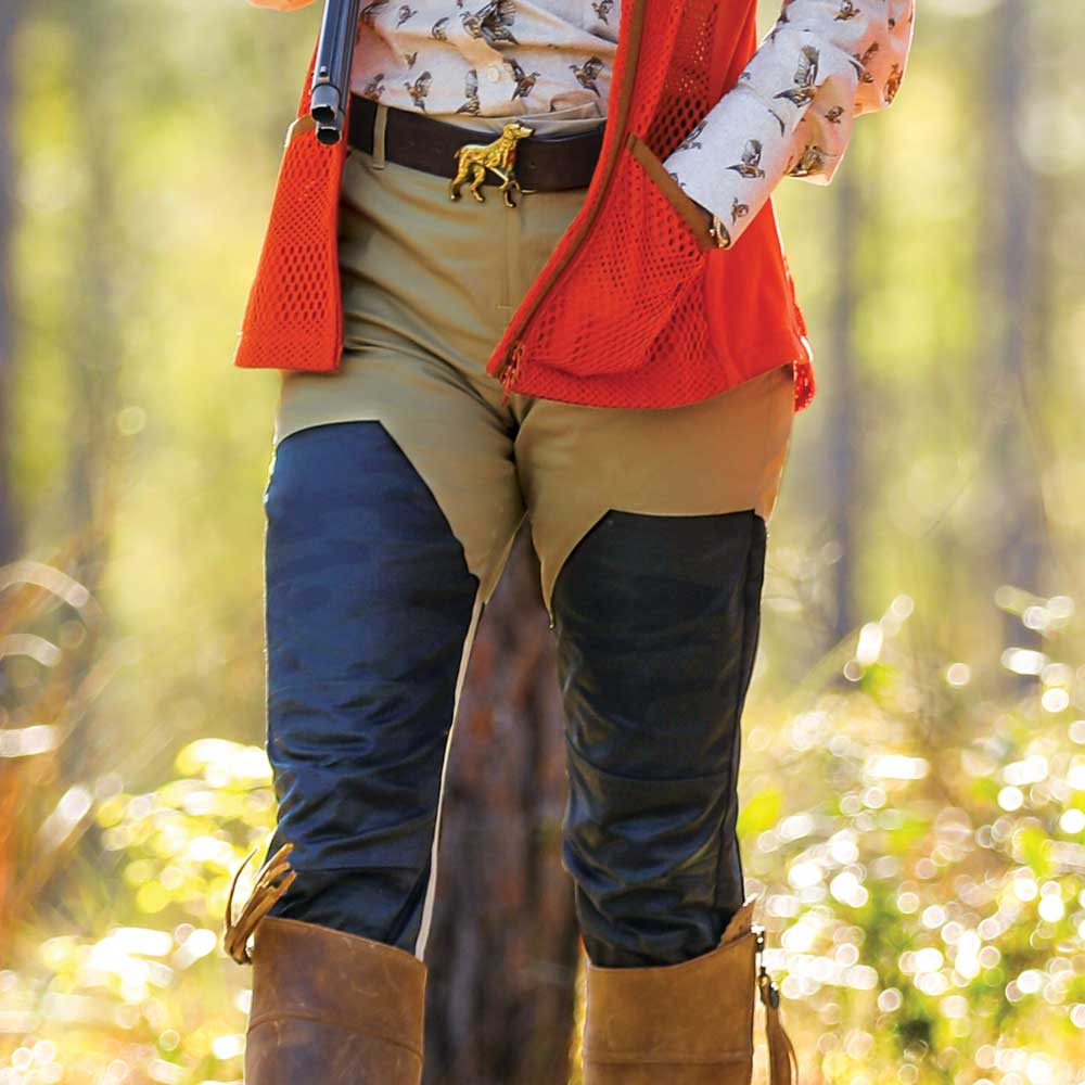 The newest addition to the Kevin’s Huntress lineup, this women’s briar pant is designed for durability, protection, and a truly flattering fit. Featuring washable wax fabric facing in your choice of British Green or Camo, the 4 oz. wax is lightweight, breathable, and never stiff. Crafted from stretch cotton poplin with articulated knees, these pants move with you while offering reliable brush protection. Designed with a true, mid-rise fit, they’ve quickly become a customer favorite, with many women returning to purchase every color.