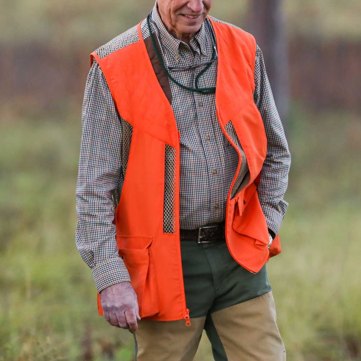 Crafted for durability, comfort, and performance, Kevin’s Men's Mesh Vest is designed to meet the needs of serious bird hunters. Constructed from lightweight poplin microfiber mesh, it provides breathability while ensuring long-lasting wear in the field. Dual quilted shooting pads with interior pockets allow for optional recoil dampening, while the thoughtful design includes expandable front pockets, side storage for beverages or training remotes, and broad armholes for maximum mobility. A nylon-lined game bag with snap closures ensures easy cleaning and stain prevention, while the two-way zipper delivers a secure, comfortable fit.