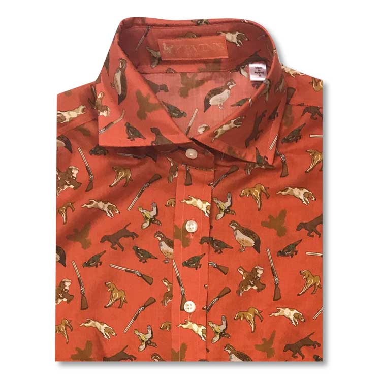 Featuring elegant pearl buttons and a custom hunt-inspired print, this shirt combines sophistication with a love of the outdoors. Expertly designed for the discerning lady hunter, it is a standout piece for any wardrobe.