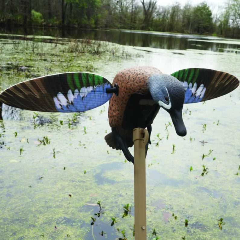 The blue wing teal Mojo decoy body has an ultra-realistic paint scheme that presents finer detail and holds its color. Also, with the magnetically attached wings, these decoys are more realistic, quieter, smoother, faster and have longer battery life.