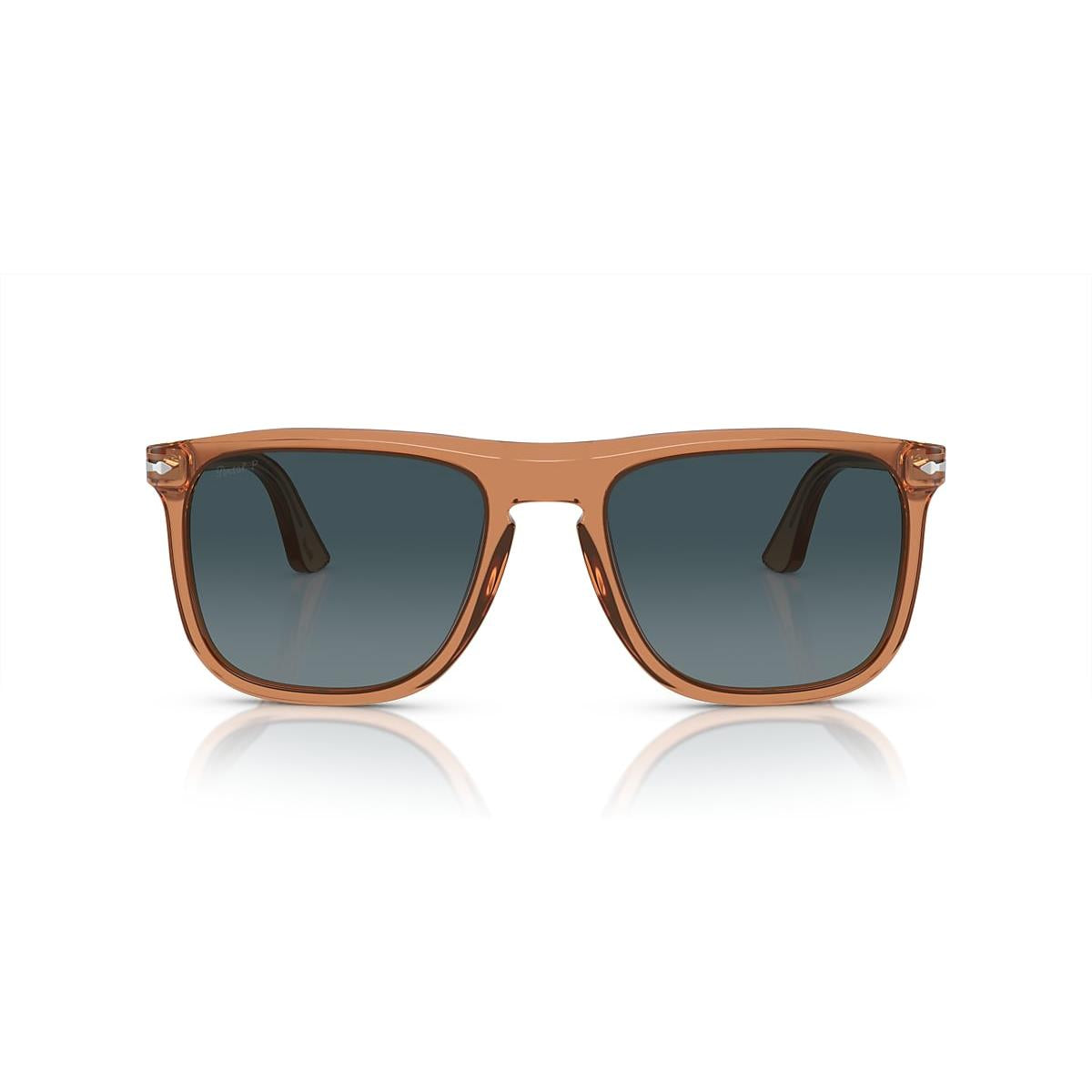 Persol PO3336S sunglasses are a pilot shape with an iconic style that will never go out of fashion. The acetate frame is designed in transparent brown color, paired with polarized light blue gradient dark blue lenses for a touch of sophistication and uniqueness. With its polished finish, this pilot frame exudes elegance and versatility.