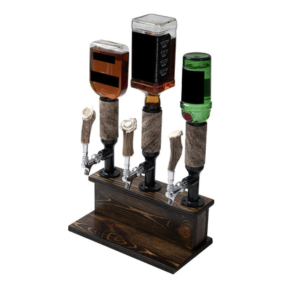 Make a bold statement in any home or bar with our handmade Triple Whiskey Towers, a perfect blend of functionality and sophistication. This gravity-fed system provides a continuous flow of your favorite spirits, while the sturdy pine wood base is expertly spaced to hold any size liquor bottle up to 1 liter (except Patron). Each tower features a plastic chamber for cleanliness and a rubber gasket at the top to ensure stability for your bottles, making it ideal for countertops, bars, man caves, or special occasions.