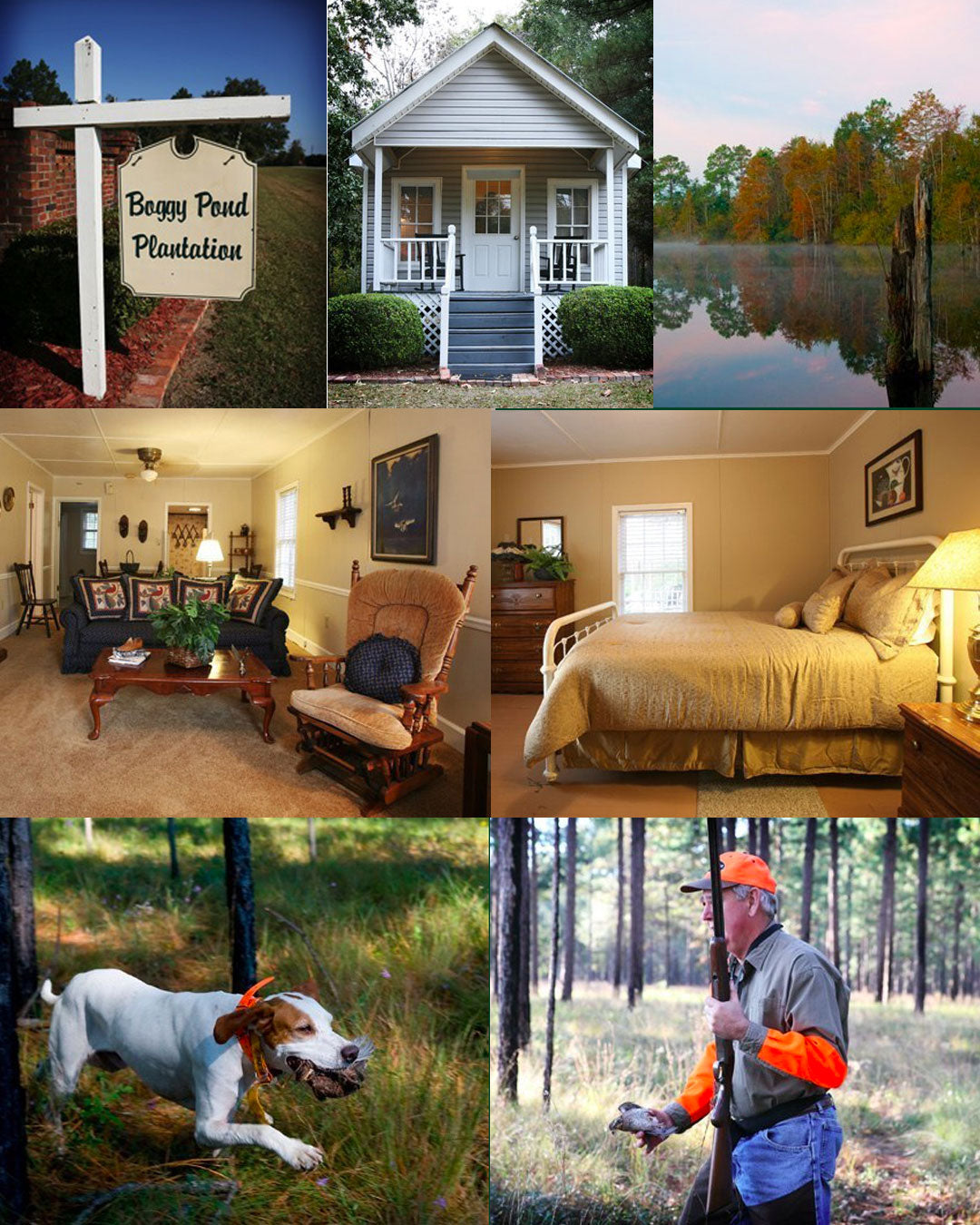 Since 1983, boggy pond plantation has offered some of the best bobwhite quail hunting in the heart of south Georgia’s quail country. Located in the famed plantation belt 50 miles north of Tallahassee Florida and between Thomasville and Albany Georgia. Boggy pond consists of over 2000 acres of beautiful longleaf yellow pine timberland. The forest is dotted with food plots that offer both, feed to main a large population of quail and provide necessary cover for protection. You will find the gently rolling terrain perfect for riding or walking. The hunt is at a leisurely pace usually about three hours in the morning and afternoon. Experienced guides drive specially equipped vehicles that give you an excellent opportunity to see the dogs in action. When the dogs point, the hunters get out of the vehicle, load their guns and get ready for the flushing dogs to flush. The hunters can follow up single birds by riding or walking depending on the terrain. Boggy pond offers six separate sleeping facilities all fully heated and air conditioned, with a total of twenty bedrooms, many with private baths. This gives us the ability to handle larger groups and still offer smaller groups the privacy they deserve. Our main lodge is a turn of the century school house. It features a large lounging and dining area complete with a fireplace, game room, bar and kitchen. Whether it is breakfast , lunch or dinner, you will be served home-styled meals featuring southern meats and vegetables. We feel that we have the best cooks in the business. Boggy Pond offers a competitive five stand and wobble traps. Rates are available for half day with or without meals or lodging or a full day with or without lodging.