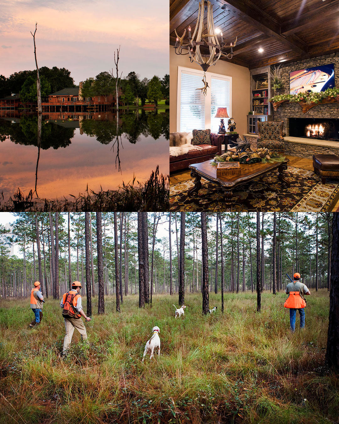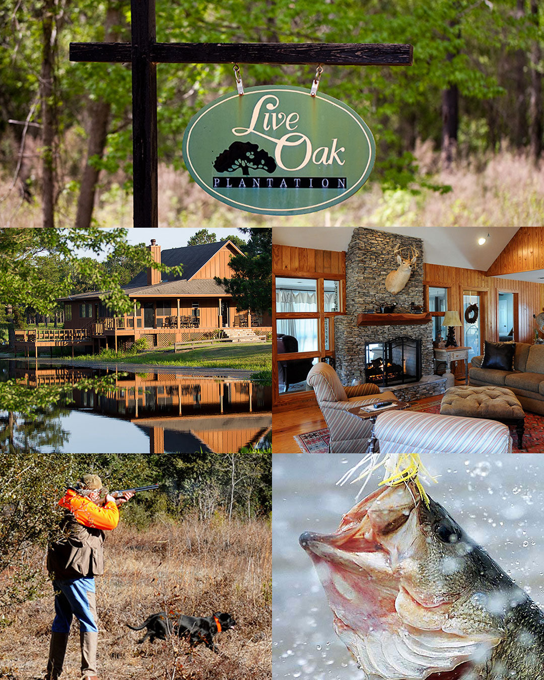 While the pace of everyday life is far quicker now than in times past, there is still a place where traditions endure and tensions slide away. It is Live Oak Plantation, an exclusive sporting retreat sheltered in the tall pine woods and wild wiregrass fields of South Georgia. Bobwhite quail are very much at home on this private 3000 acre reserve and our professional hunting guides and champion bred bird dogs will take you right to the action. Enjoy our private, professionally-designed, par 34, executive golf course or cast a line into one of our lakes and prepare for a big fight from a large-mouth bass. Handsome antique furnishings in the main lodge, waterfront relaxation in the lake lodge, pro shop, hearty home cooking three times a day and exceptional service from people who will make this a personal or business retreat that you and your friends or colleagues will never forget.